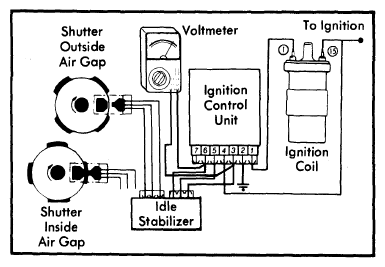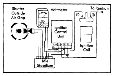 - Turn ignition switch "ON". With trigger wheel shutter outside Hall sending unit air gap, check voltage reading. It should be 0.4 volts or less.