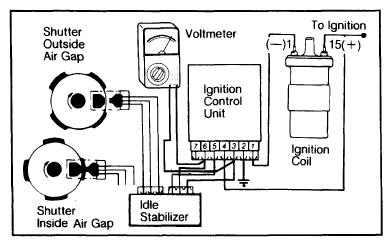 - Turn ignition switch "ON". Turn engine over by hand, and check voltage reading. It should be 0-2 volts. Turn ignition "OFF". If not to specifications, replace Hall generator unit in distributor or replace distributor.