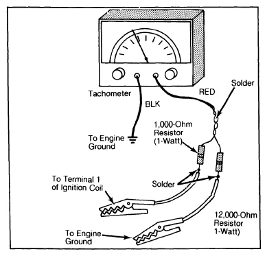 - The second wire (leading to engine ground) must be equipped with a 12, 000-ohm, 1-watt resistor. Both resistors should be soldered to attaching wires.