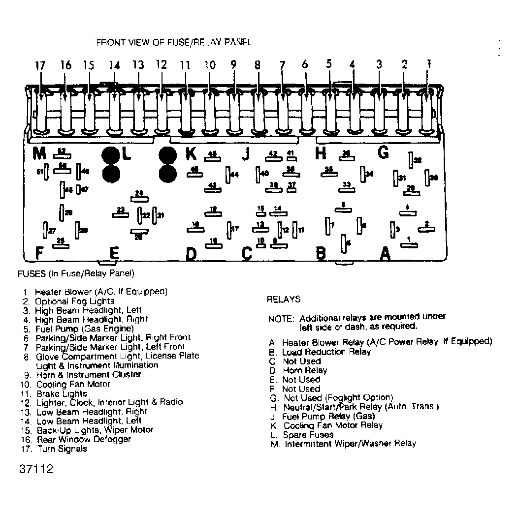 | Fuse/Relay Panel | Left side of tray area in engine compartment. See Figure & Figure . |