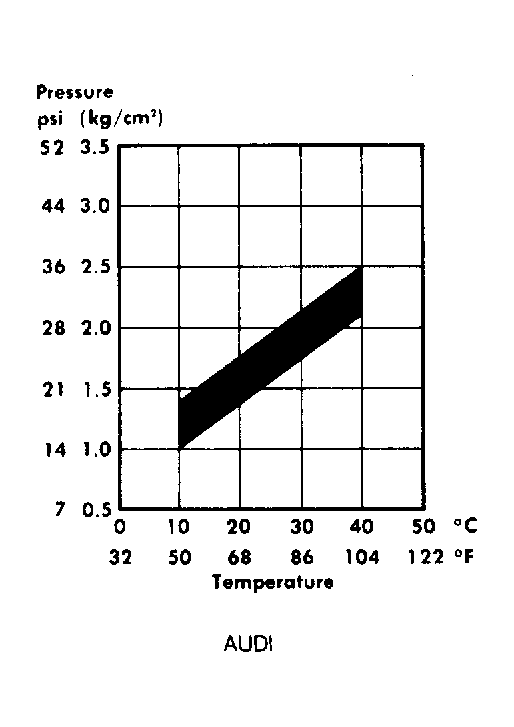 - Check pressure quickly. Reading should fall in shaded area of graph. Be sure to check air temperature and read correct area of graph. See Fig 1 .