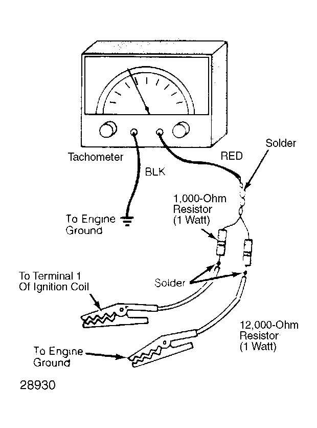- The second wire (leading to engine ground) must be equipped with a 12,000-ohm, 1-watt resistor. Both resistors should be soldered to attaching wires.