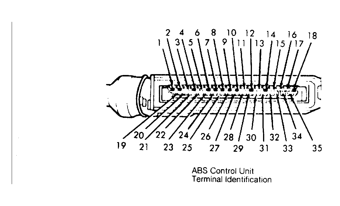 - Turn ignition off. Use ohmmeter to check continuity between terminal No. 6 in plug for hydraulic modulator and terminal No. 27 in plug for ABS control unit. If there is no continuity, repair wiring harness to restore continuity.