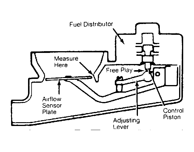 - If free play clearance is incorrect, remove fuel distributor. Check basic adjustment of sensor plate lever. Install fuel distributor and repeat free play clearance check. If still incorrect, adjust sensor plate clearance with control piston stop screw.