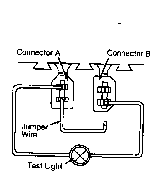 3. To activate diagnostic procedure, locate 2 diagnostic connectors in drivers footwell area. Connect a test light between connectors A and B. See Figure .