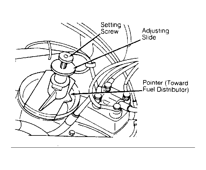 - Place sensor plate adjustable holder on airflow sensor housing, with holder centered over plate. Pointer on edge of holder base must point toward center of fuel distributor. See Fig 1