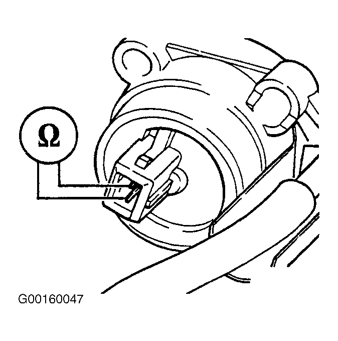 - Using a DVOM, switch to resistance range (mode). Measure resistance across IAC terminals. See Fig 2.