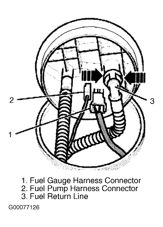 . Turn ignition off and remove ignition key from vehicle. Disconnect negative battery cable. Working in luggage compartment, remove fuel pump access plate. Noting orientation of fuel lines, mark and remove 4 fuel lines. Disconnect fuel pump and fuel level sensor harness connector.