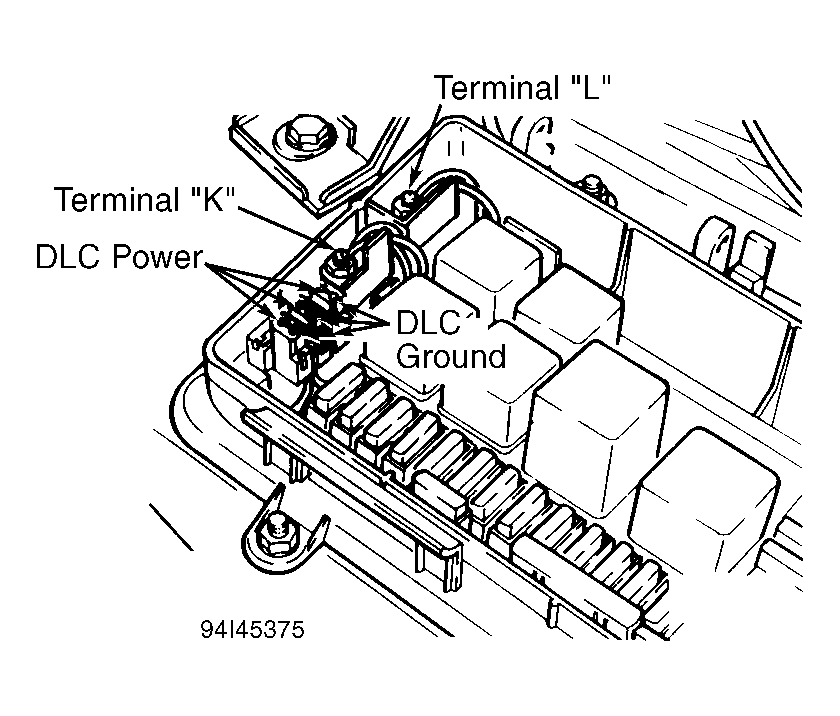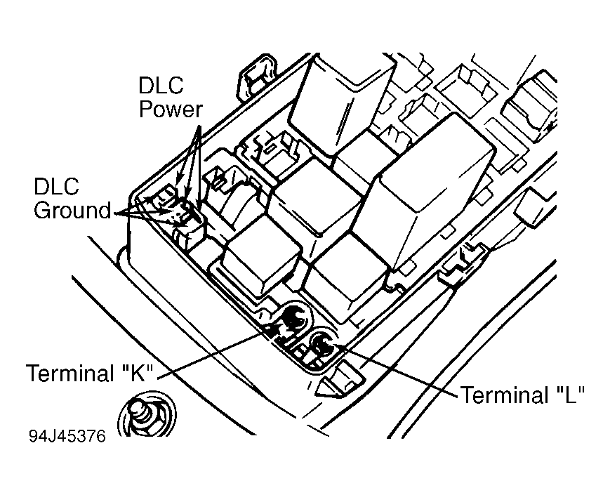 Black DLC is for scan tester power and ground circuits. White DLC is for scan tester rapid data transfer circuits. All systems that can be monitored with a scan tester (ECM, automatic transmission, ABS, etc.) are monitored through the same White DLC. Rapid data transfer circuits for all systems are connected in parallel to terminals "K" and "L", which serve as common junction blocks. See Figure or Figure . Ground terminal of White DLC is connected to terminal "L". Power terminal of White DLC is connected to terminal "K".
