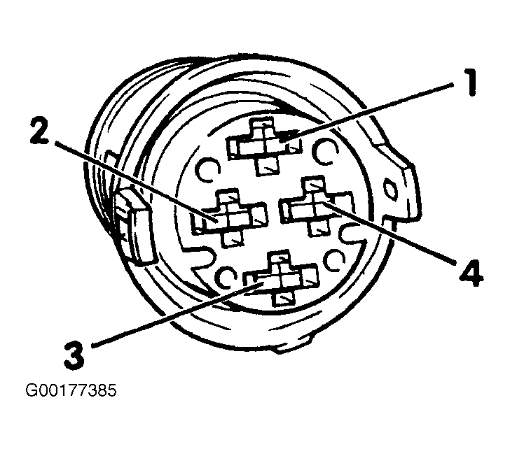 - Connect DVOM multimeter switched DC voltage range to harness connector terminals No. 1 (Green/Yellow wire) and No. 4 (Brown wire) using cables from (VAG 1594) adapter kit. See Fig 2 .
