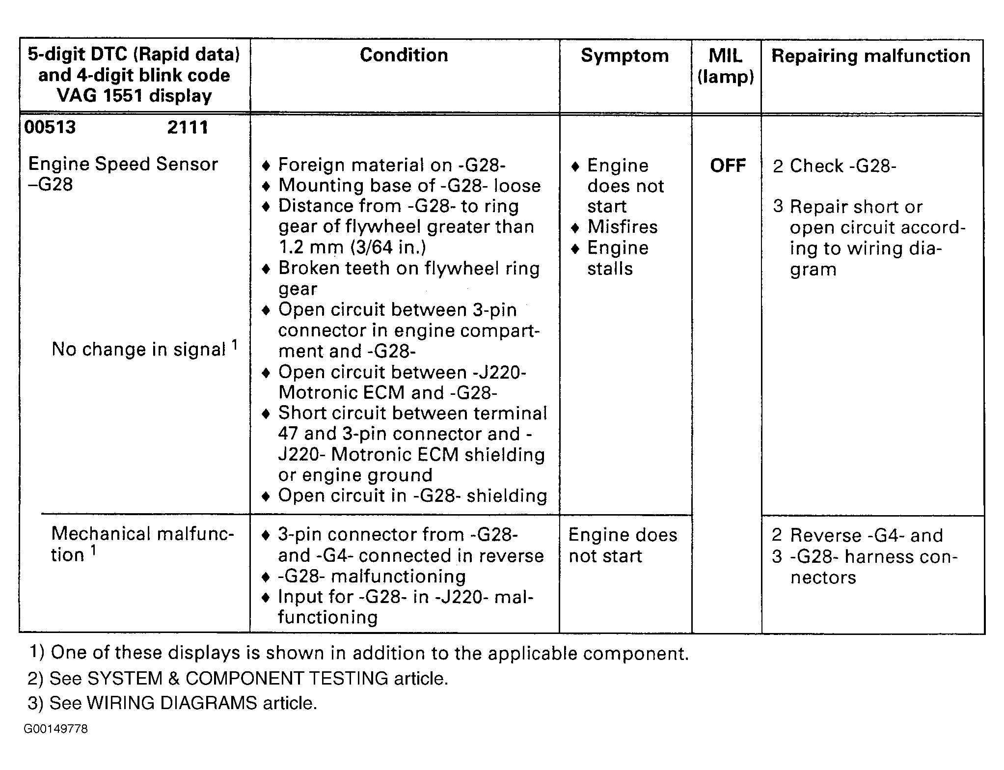DTC 00513/2111 - Engine Speed Sensor