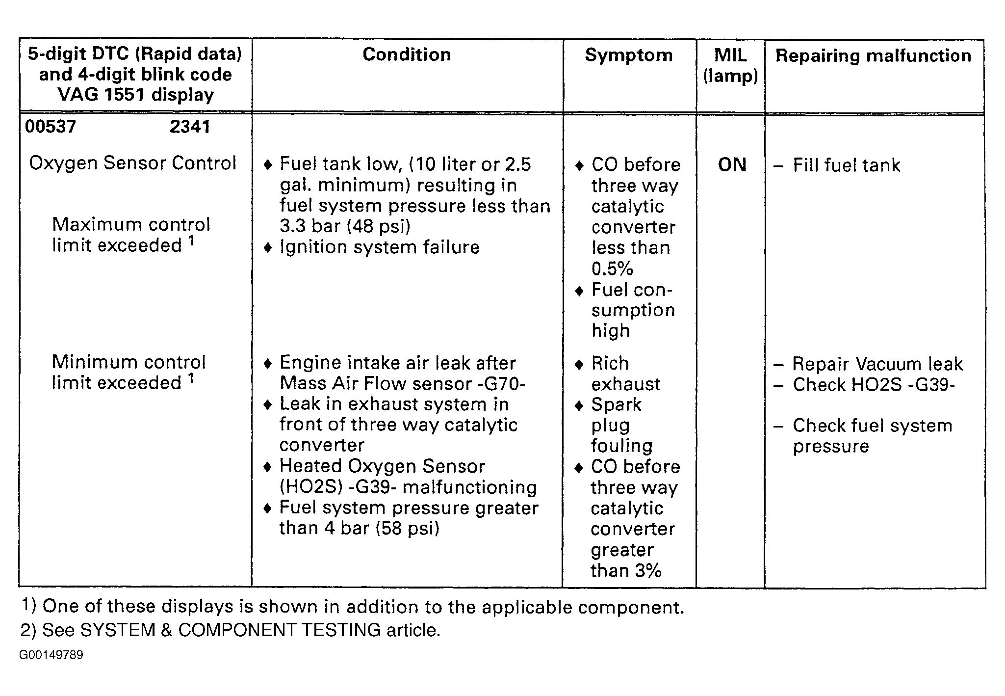 If the scan tool indicates the above code, a range/performance problem in that circuit may exist. To perform test, see Fig 1 .