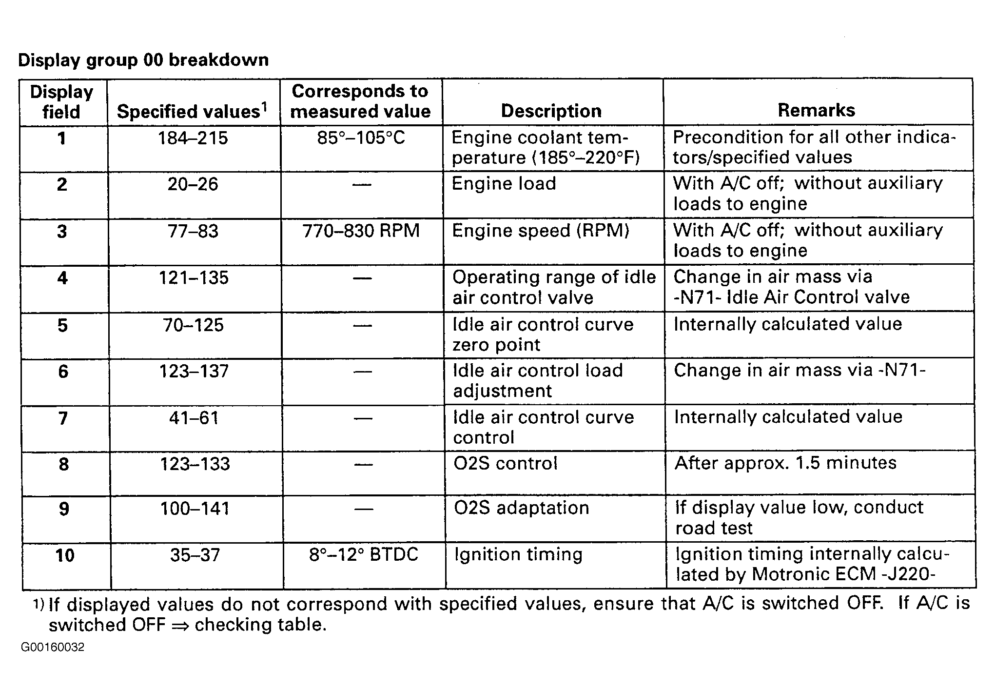 Basic setting function is carried out with the engine running. When in the basic setting function, the Motronic Engine Control Module (ECM) establishes the following conditions: