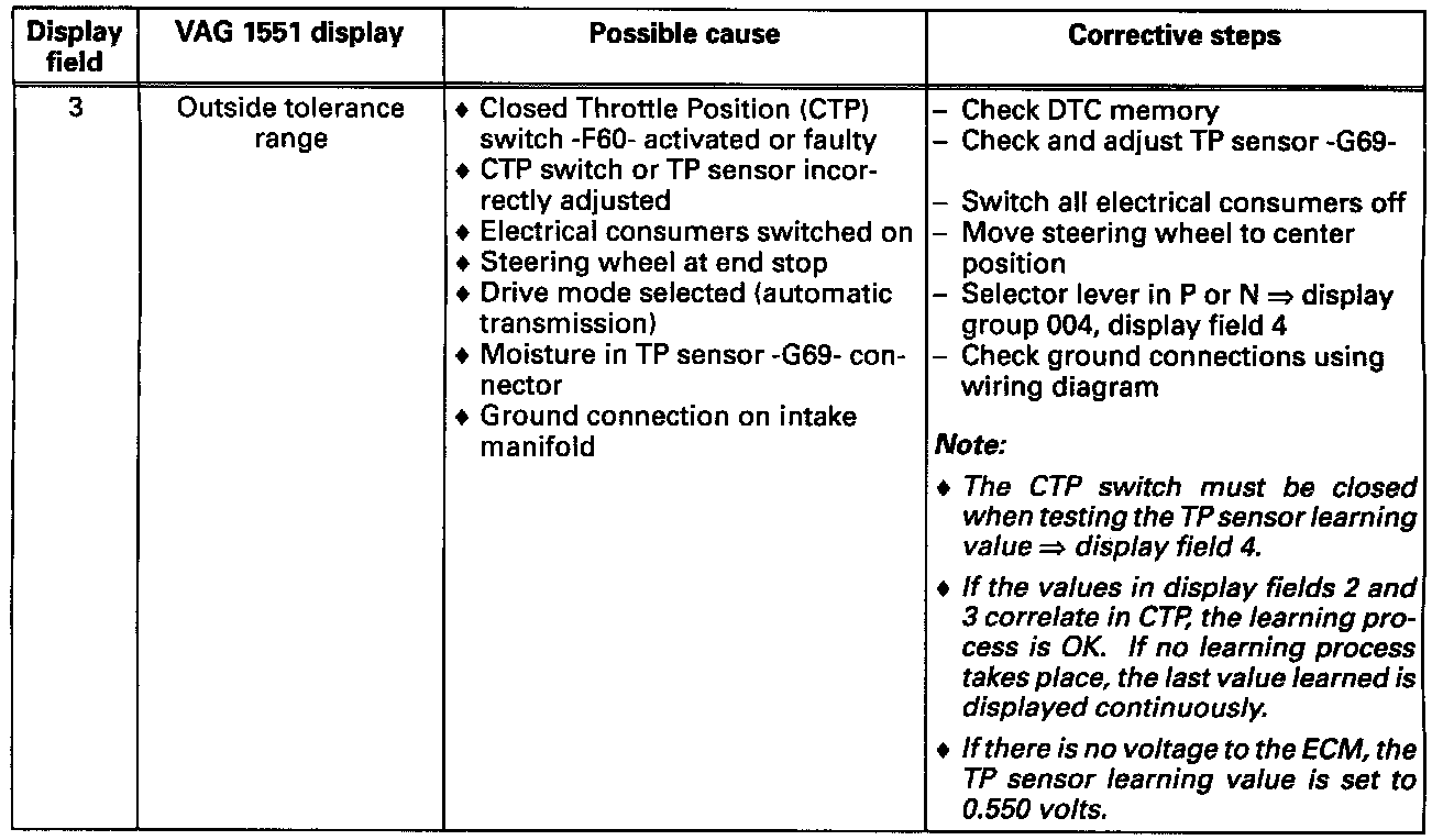 VAG 1551 Display, Measuring Value Block Display Group 002: