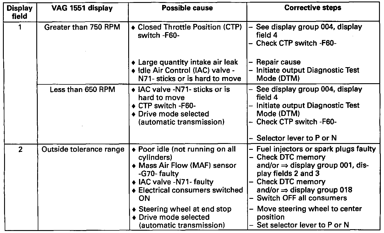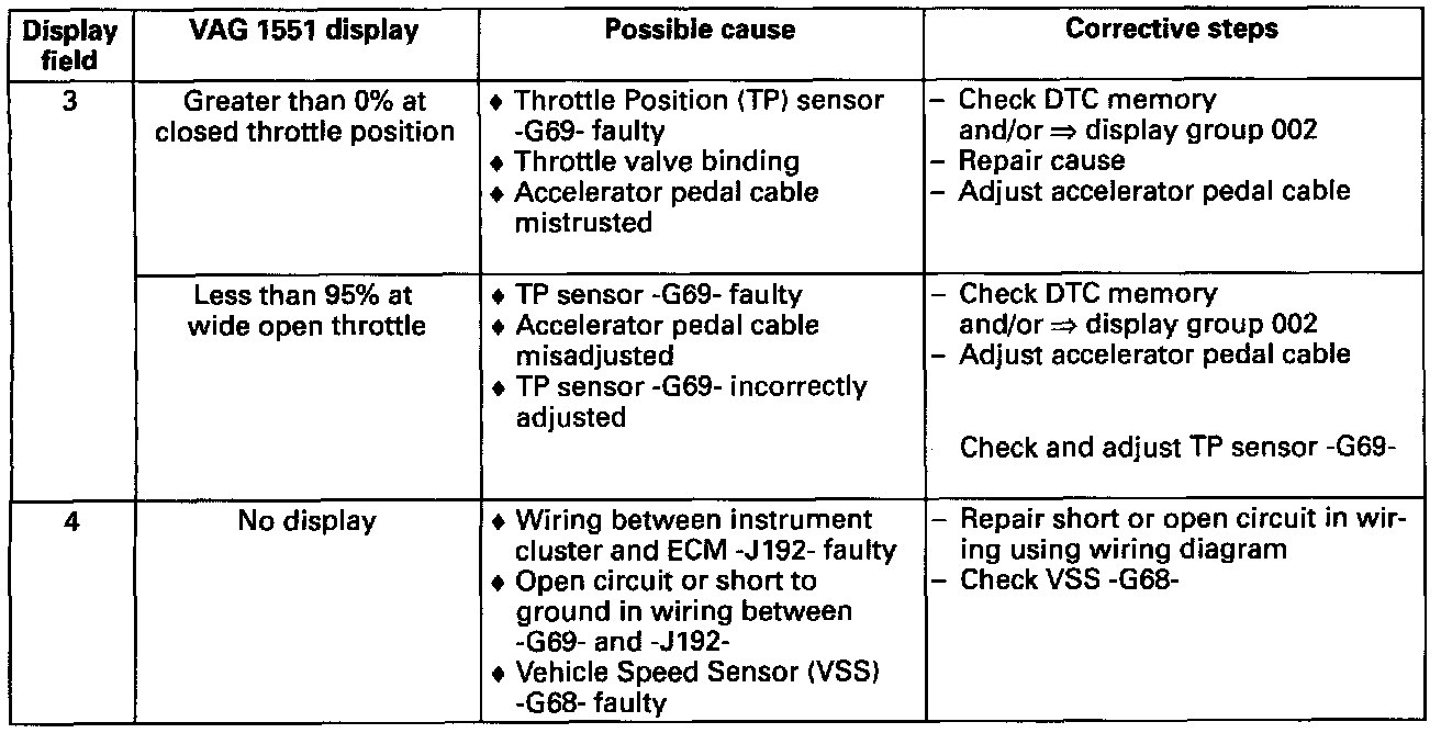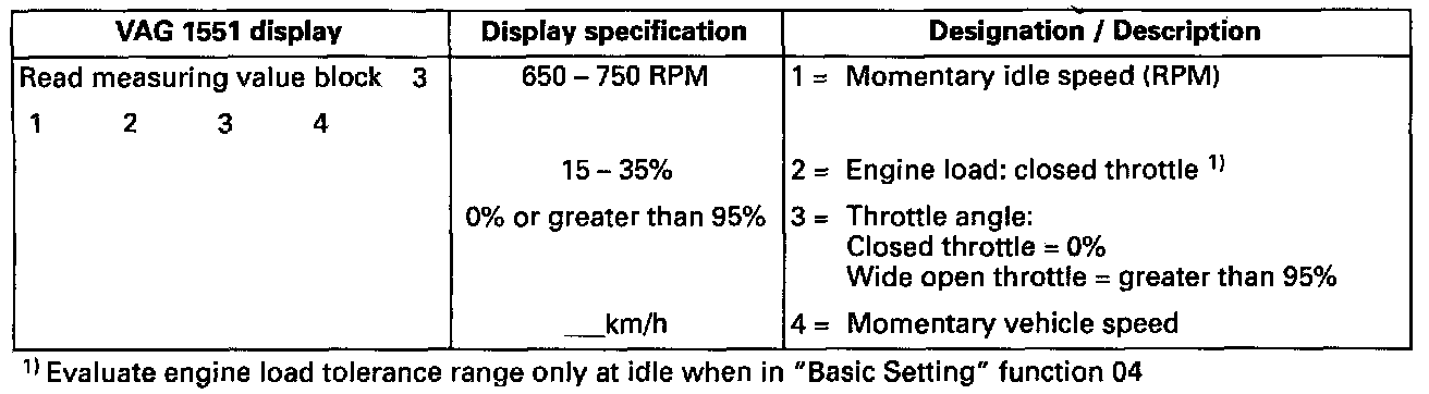 VAG 1551 Display, Measuring Value Block Display Group 003: