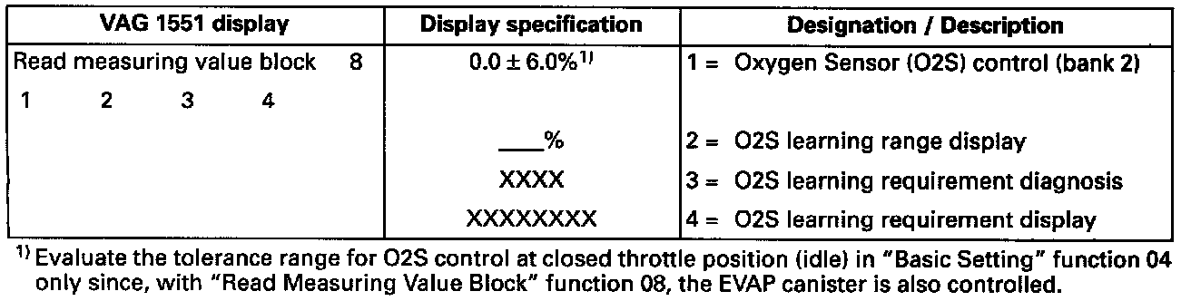 ^ The oxygen sensor control should basically only be evaluated after successful learning (see learning requirement display), both in "Basic Setting" function 04 and in "Read Measuring Value Block" function 08.