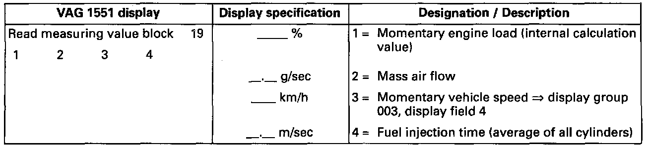 VAG 1551 Display, Measuring Value Block Display Group 019: