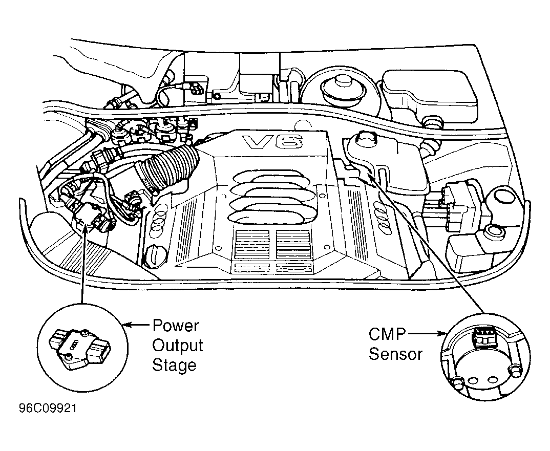 Disconnect ignition coil 3-pin connector (located in front of intake manifold). Disconnect ignition coil power output stage 3-pin connector (located on right side of engine compartment). See Fig 1 . Measure resistance between any terminal of ignition coil 3-pin connector and power output stage 3-pin connector terminal No. 3. See Figure and Figure . Maximum allowable resistance is 5 ohms. If resistance is not within specification for any coil, replace ignition coil assembly.