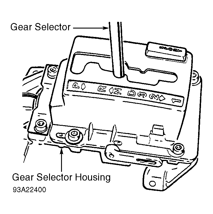 Move gear selector to Neutral. Energize solenoid and ensure lower part of gear selector is centered over solenoid. Install top of gear selector housing. Position gear selector housing so gear selector is centered between Reverse and Drive. See Fig 1 . Tighten gear selector housing screws.
