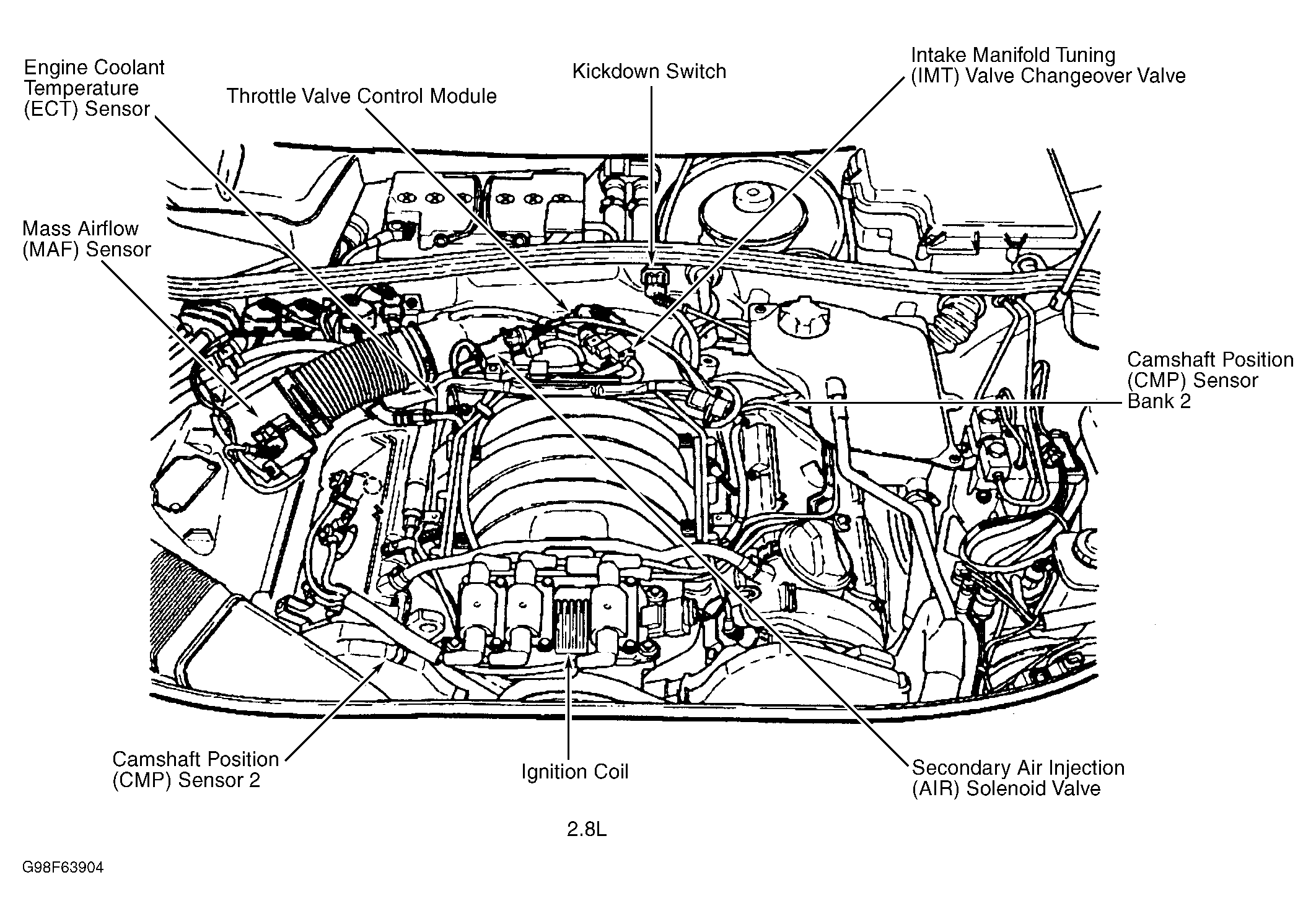| Throttle Valve Control Module (2.8L) | On rear of engine, on intake manifold. See Figure. |