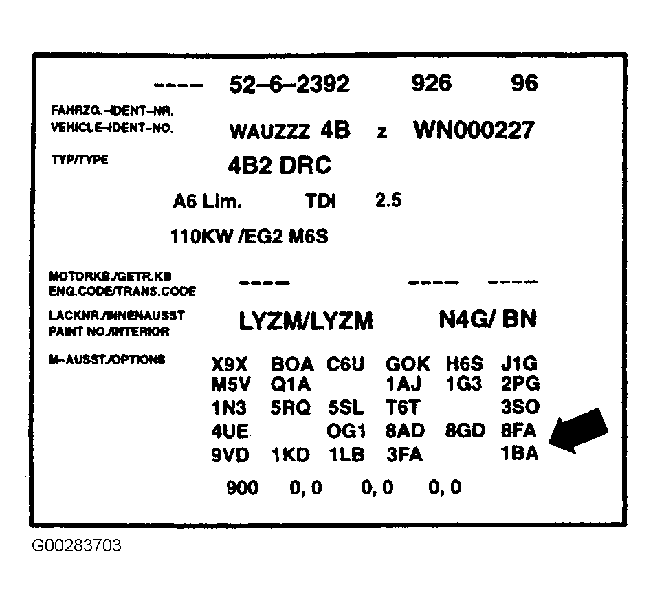 Various suspensions are offered as options. These variations are identified by the factory weight code on the vehicle data plate. See Fig 1