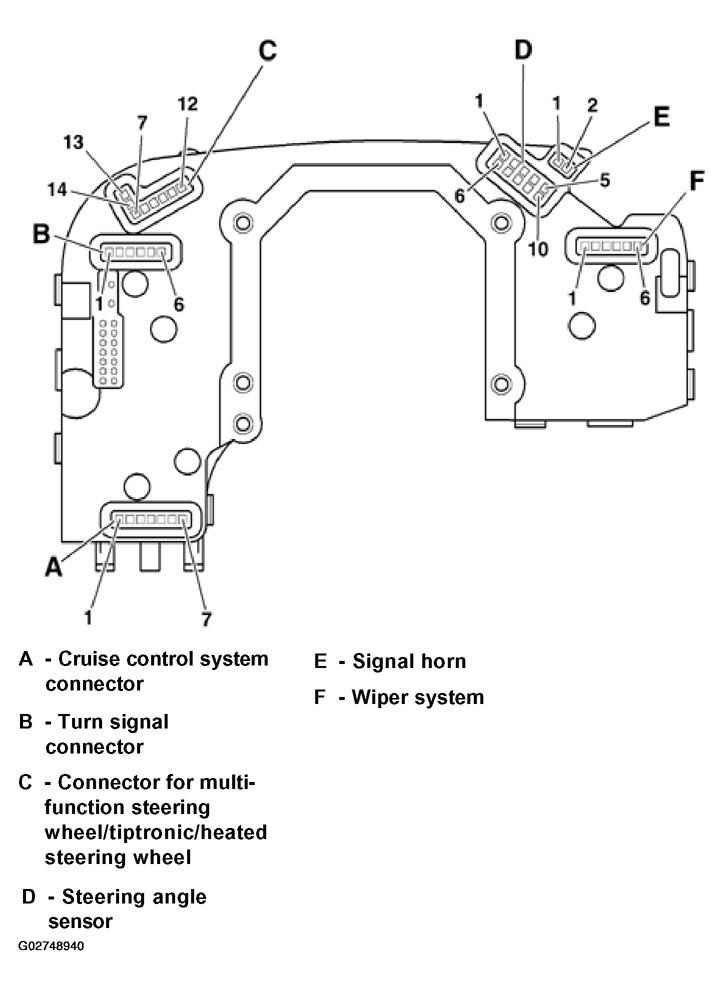 - - Connector for multifunction steering wheel/tiptronic/heated steering wheel