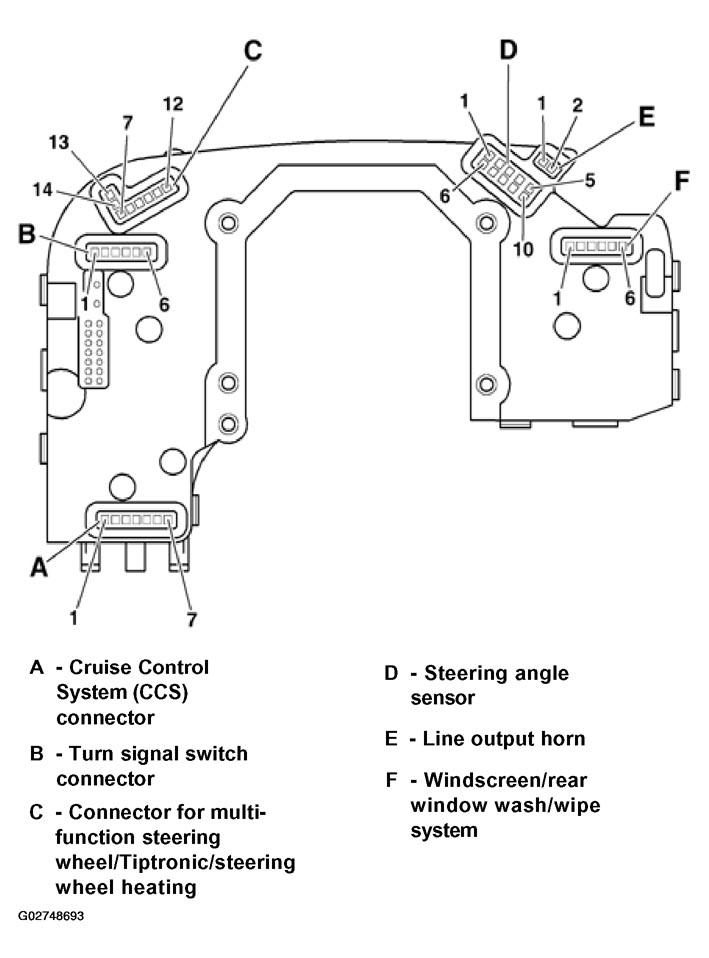 3. Connector for multi-function steering wheel/Tiptronic/steering wheel heating