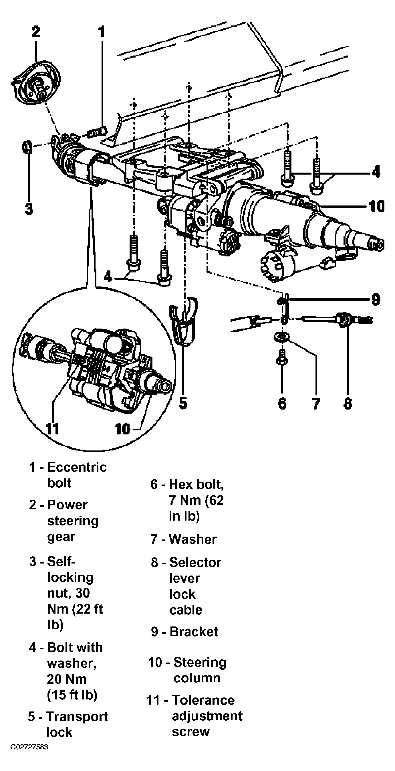- The steering column is only supplied complete as a replacement part. Servicing is not possible.