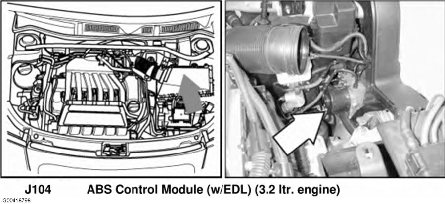 | ABS Control Module (W/EDL) (3.2L) | Left side of engine compartment. See Figure . |