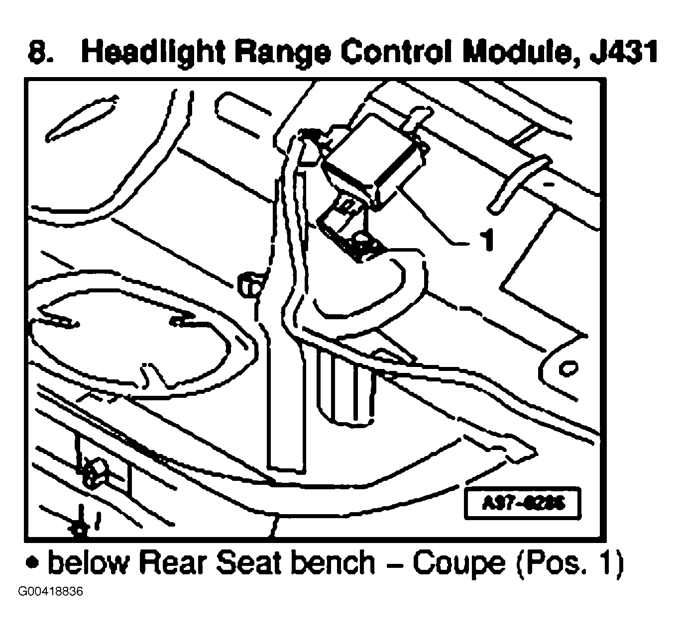 | Headlight Range Control Module | Below rear bench seat. See Figure . |