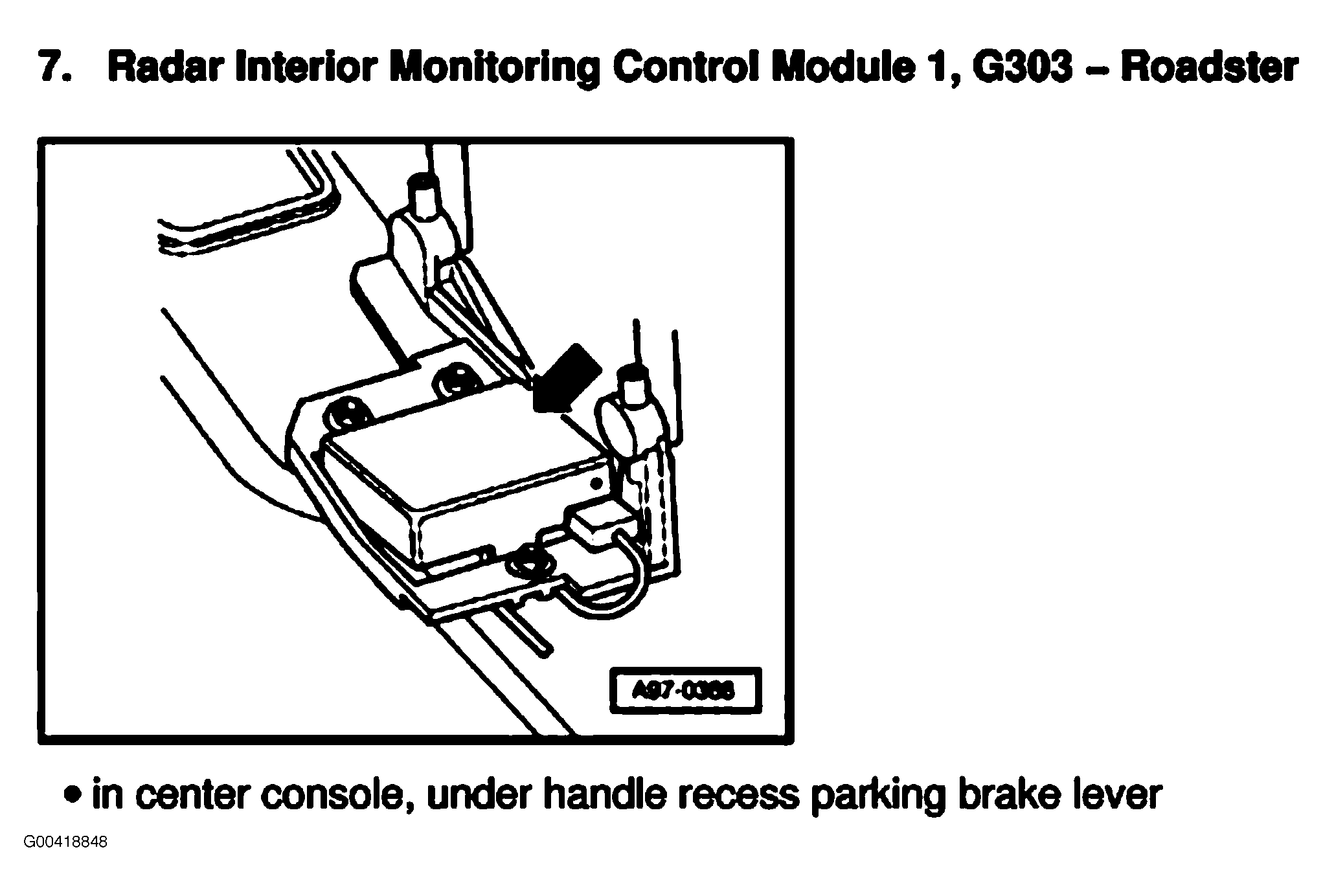 | Headlight Beam Adjusting Control Module (Roadster) | On bulkhead behind seats. See Figure . |