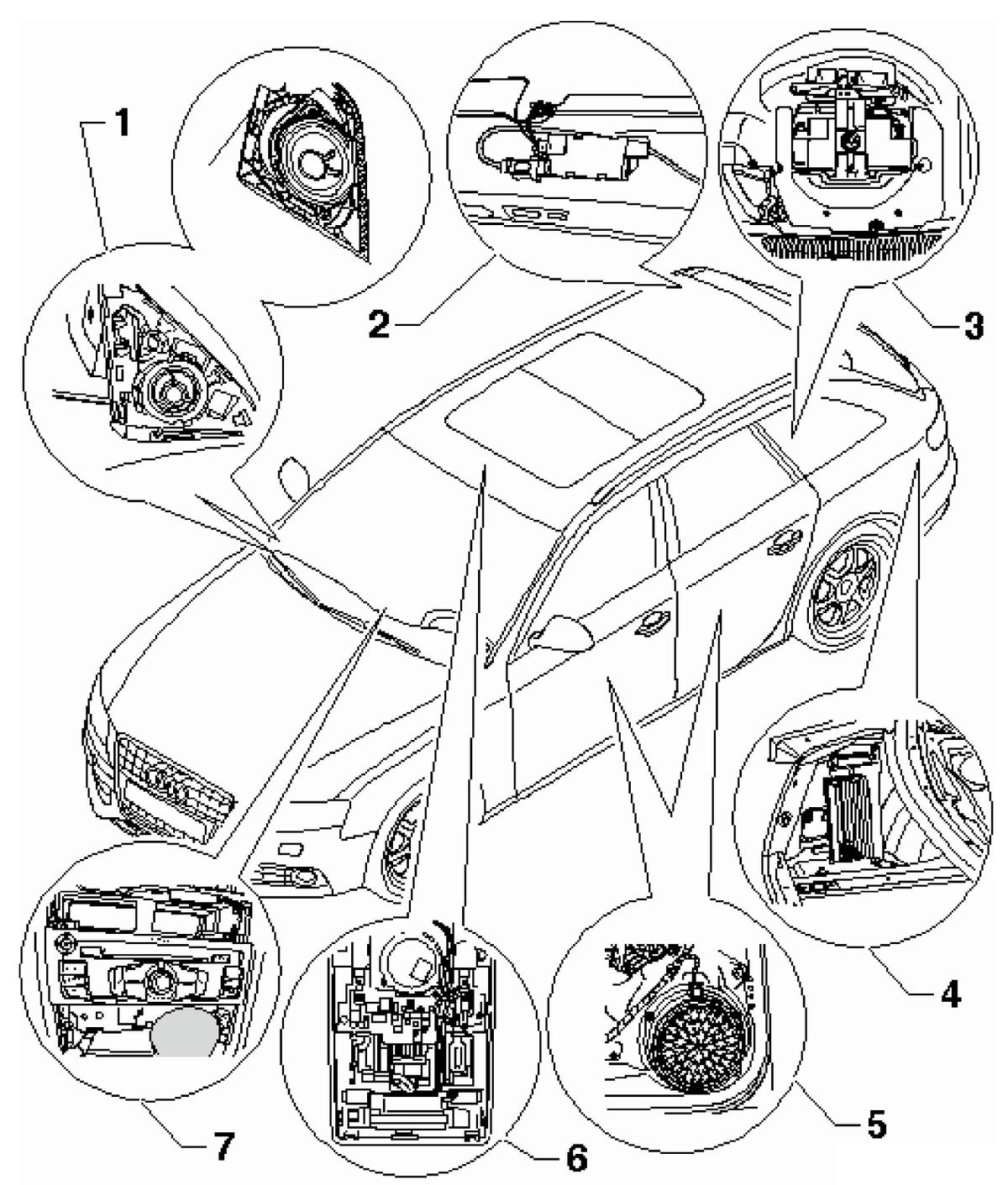 | Digital Sound System Control Module (Avant) (4) | Left rear of cargo area. See Figure. |
