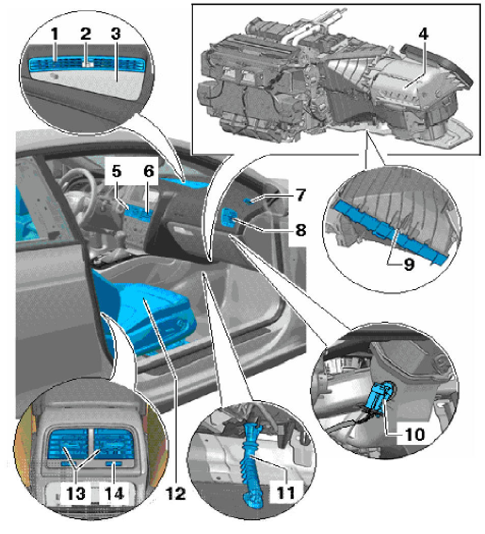 | Seat Ventilation Control Unit (Front Passenger) (12) | Under front passenger's seat cushion. See Figure. |