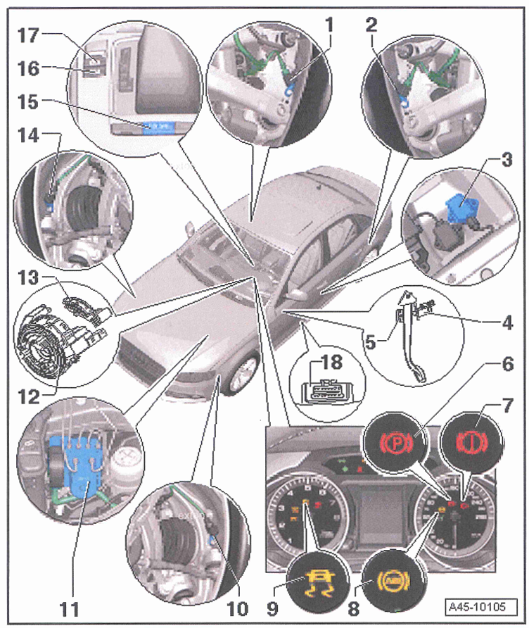 | ESP Sensor Unit (3) | Under driver's seat. See Figure. |