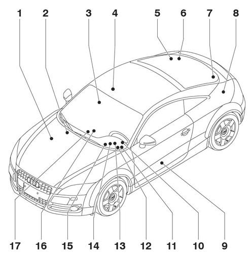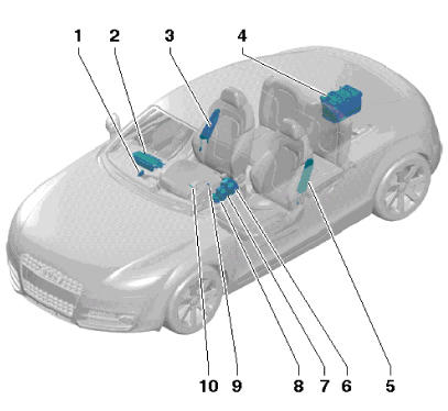 | Convertible Top Control Module (7) | Left rear of luggage compartment. See Figure. |