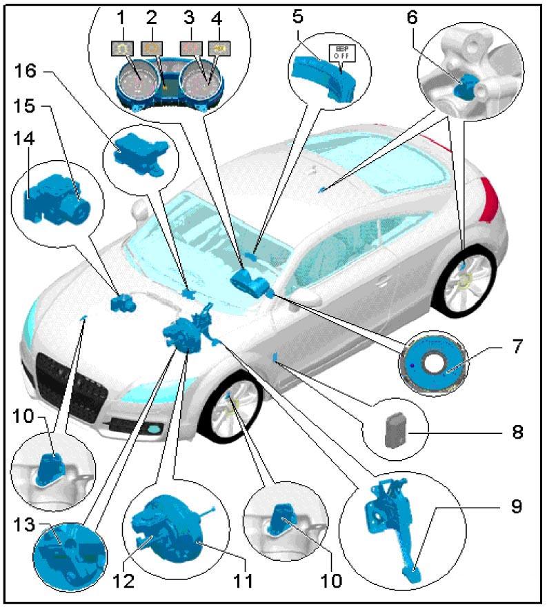 | Tire Pressure Monitoring Control Module (12) | Behind left side of dash. See Figure. |