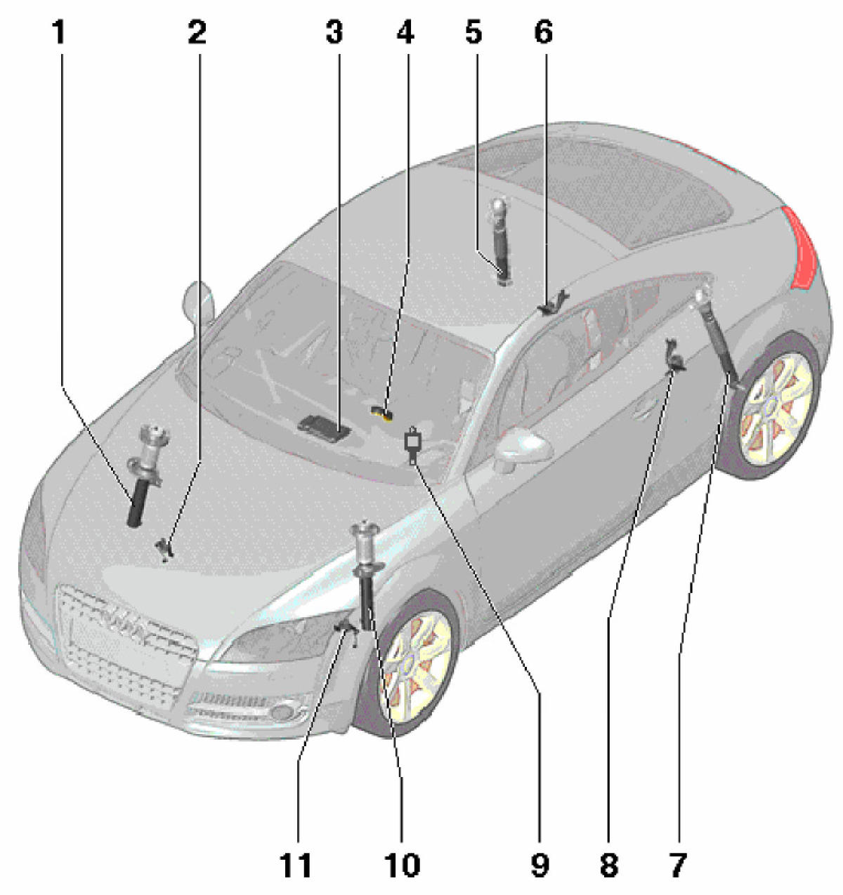 | Electronic Dampening Control Module (3) | Under front passenger's seat. See Figure. |