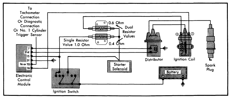- If spark jumps gap, check distributor cap, rotor, cables and spark plugs. Be sure ignition timing and fuel system are OK. If no sparks occur, perform the following tests