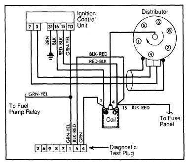 The distributor contains a rotating trigger wheel and a stationary magnetic pick-up coil (unless it is repositioned by vacuum diaphragm).