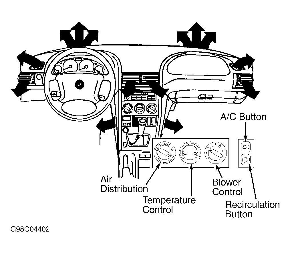 This knob, in center of control panel, allows the increase or decrease of temperature in passenger compartment. The knob controls the cable connected to temperature flap lever. See Figure .