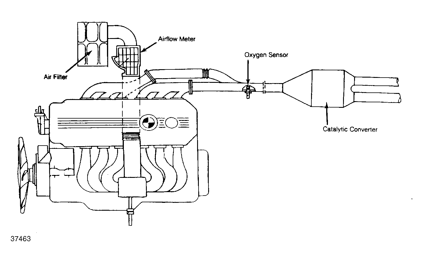 | Airflow Meter | Behind air cleaner housing, on top of engine. See Figure . |
