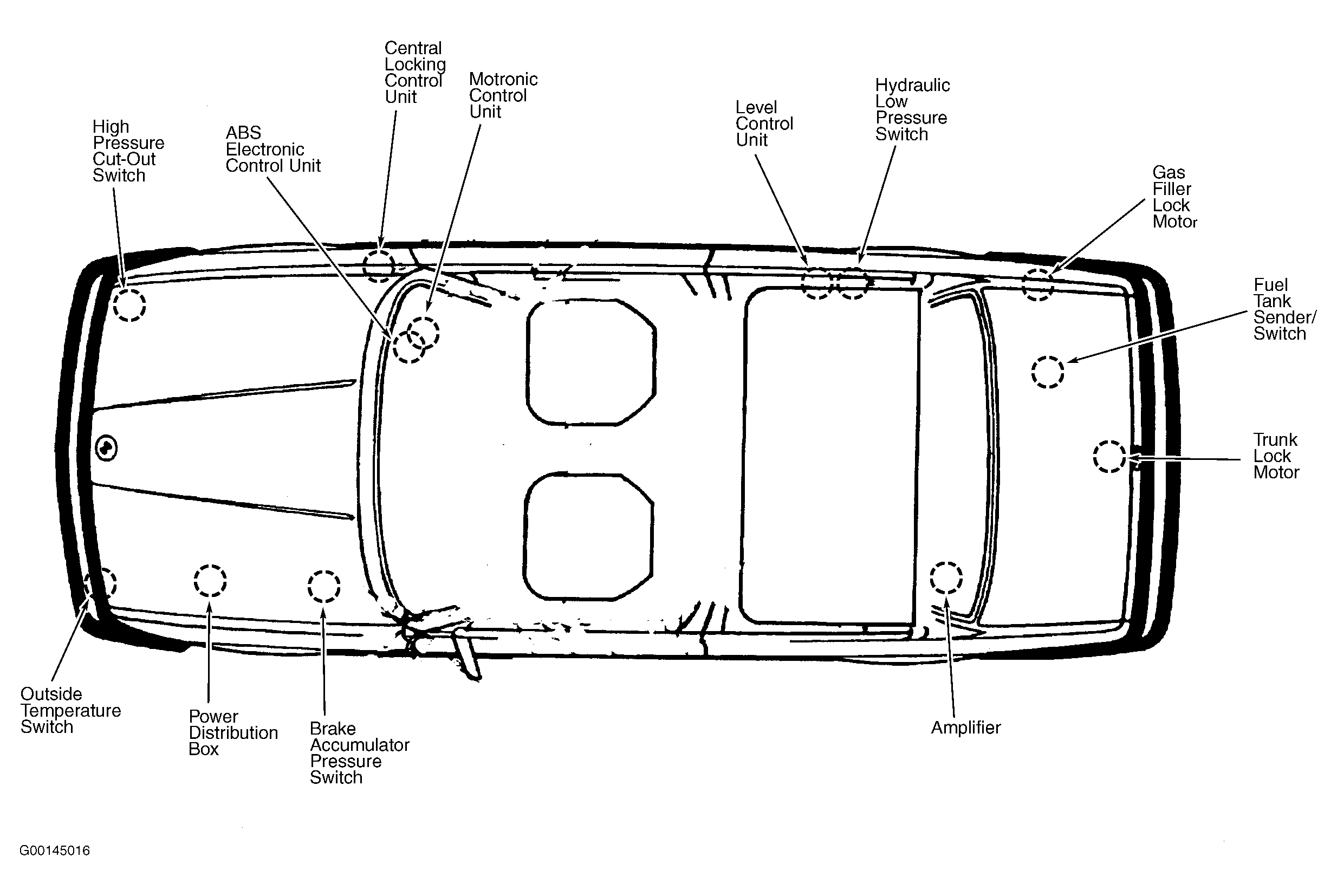 | Level Control Unit | In front of right rear axle. See Figure . |