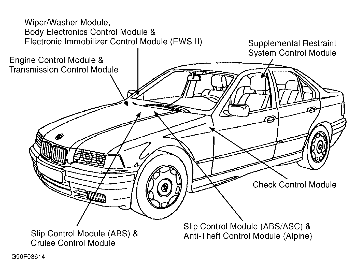 | Electronic Immobilizer Control Module (EWS II) | Under right side of dash, behind glove compartment. See Figure . |