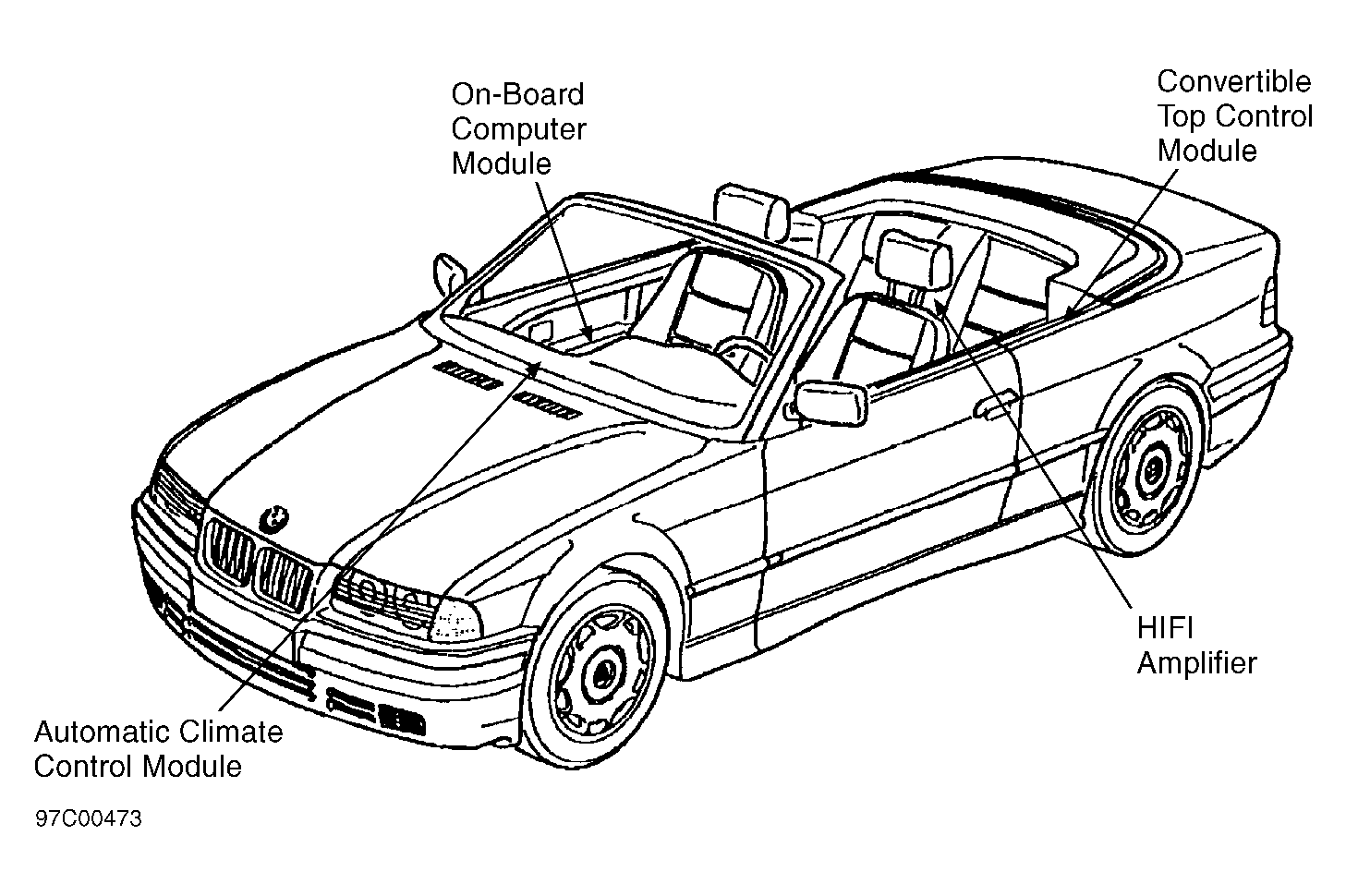 | Convertible Top Control Module | On lower left C-pillar, behind side panel. See Figure . |