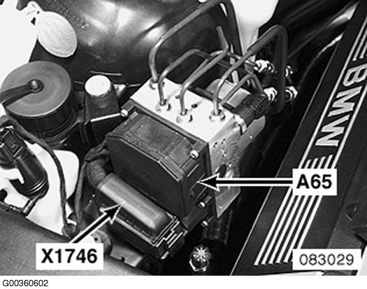 ABS/DSC Control Module (A65) Right side of engine compartment. See Figure.