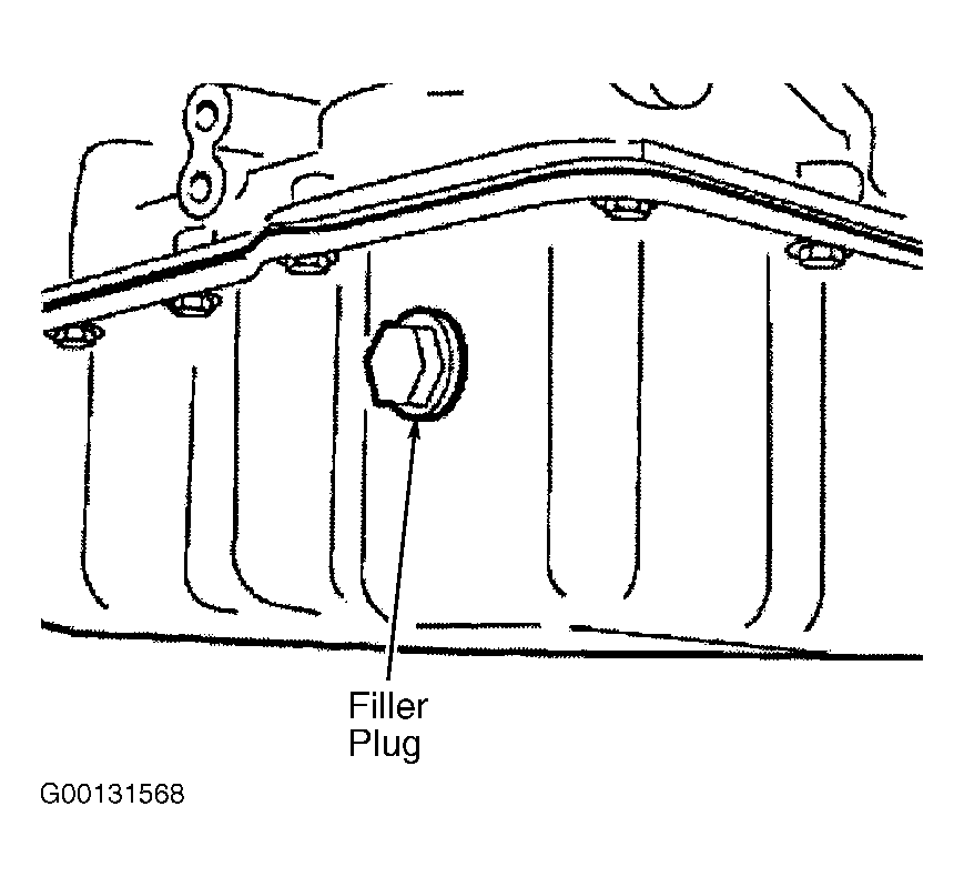 To top off transmission after a repair, put selector lever to setting "P". Vehicle must be horizontal and secured to prevent it from rolling away. Unfasten filler screw. Top off automatic transmission using filler neck attached to filler aperture until oil emerges at filler/overflow bore. See Fig 1. Start engine. Top off automatic transmission again until oil emerges at filler/overflow bore. Screw in filler plug. See Fig 2. Operate brake and, with engine at idle speed, shift transmission through all gears several times. Connect BMW Diagnosis and Information System (DIS) and/or BMW MoDiC to vehicle and perform oil level check in accordance with manufacturer's instructions. Replace sealing ring. Tighten drain plug to 11 ft. lbs. (16 N.m).