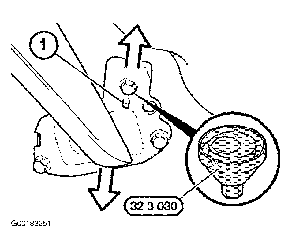 - Release screws approximately 1 1/2 turns at bearing pedestal. Attach special tool (32 3 030) to screw head and to notch (1). See Figure.