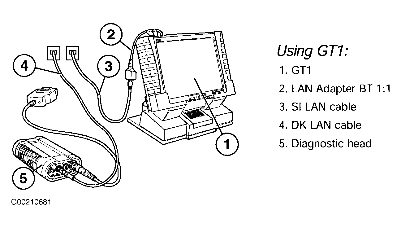 Diagnostic head must be hard wired to the network drop to ensure uninterrupted programming (do not use radio connections). If using DISplus, see Fig 1. If using GT-1, see Fig 2.