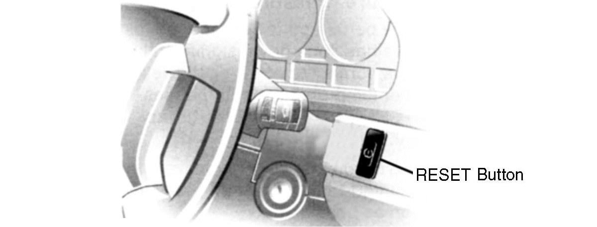 - Press reset button (for no longer than 10 seconds) until tire pressure warning light illuminates Yellow for a few seconds. See Fig 1, Fig 2, Fig 3 or Fig 4