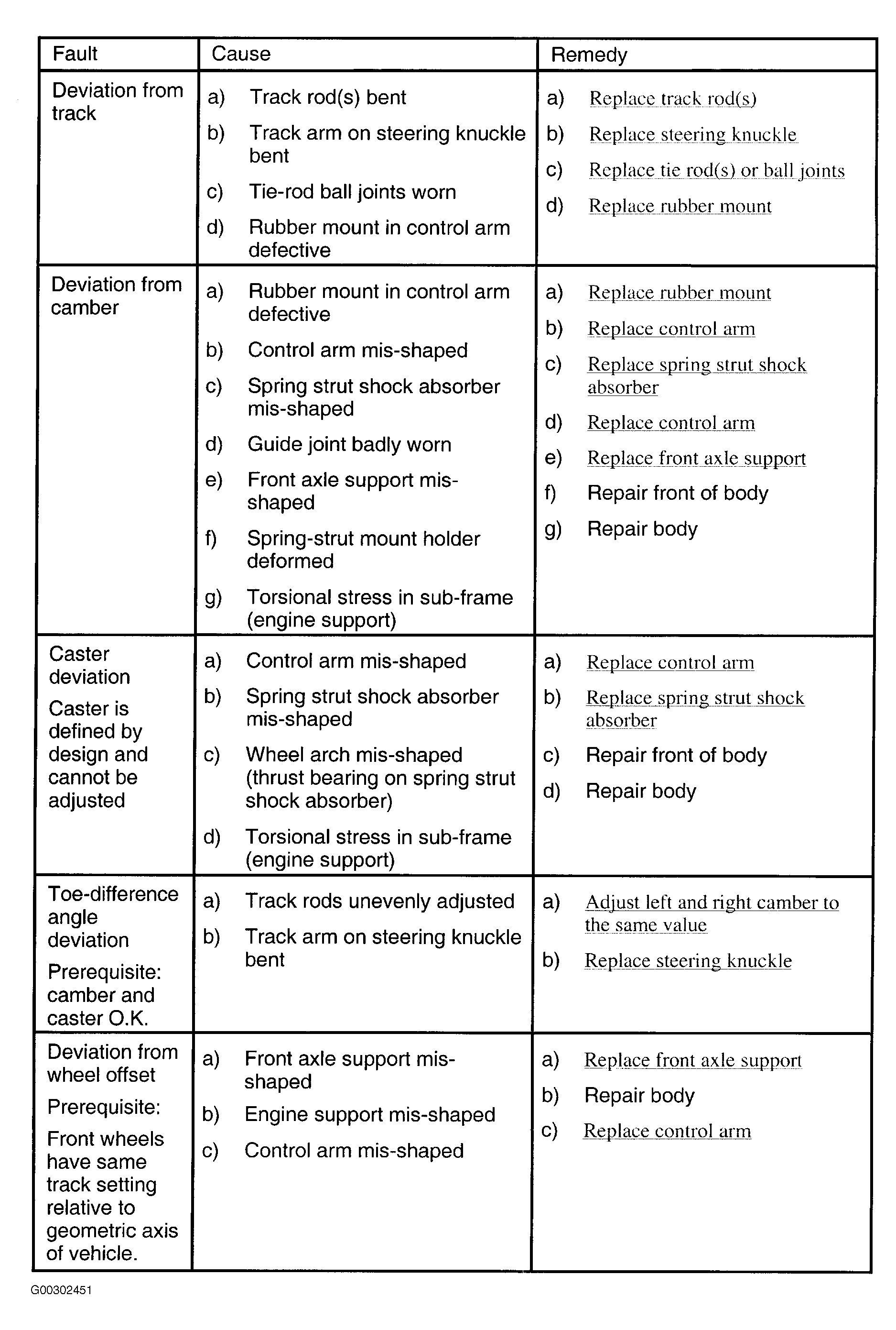 Fig 1: Trouble Shooting Front Axle Alignment